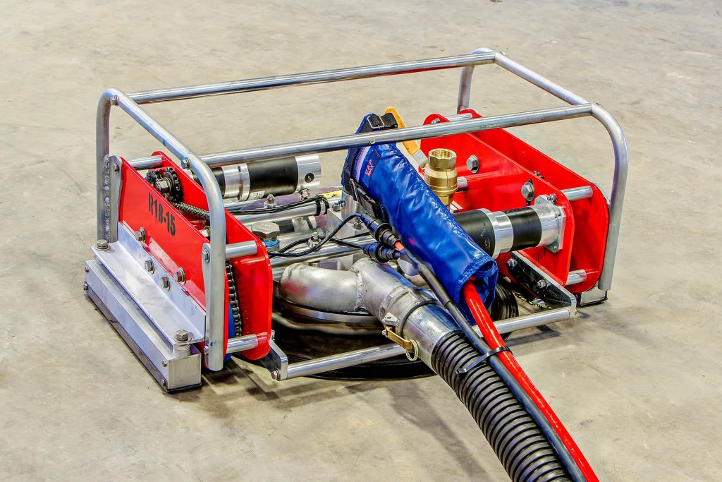 magnetically attached, steel surface preparation robot with 18″cut